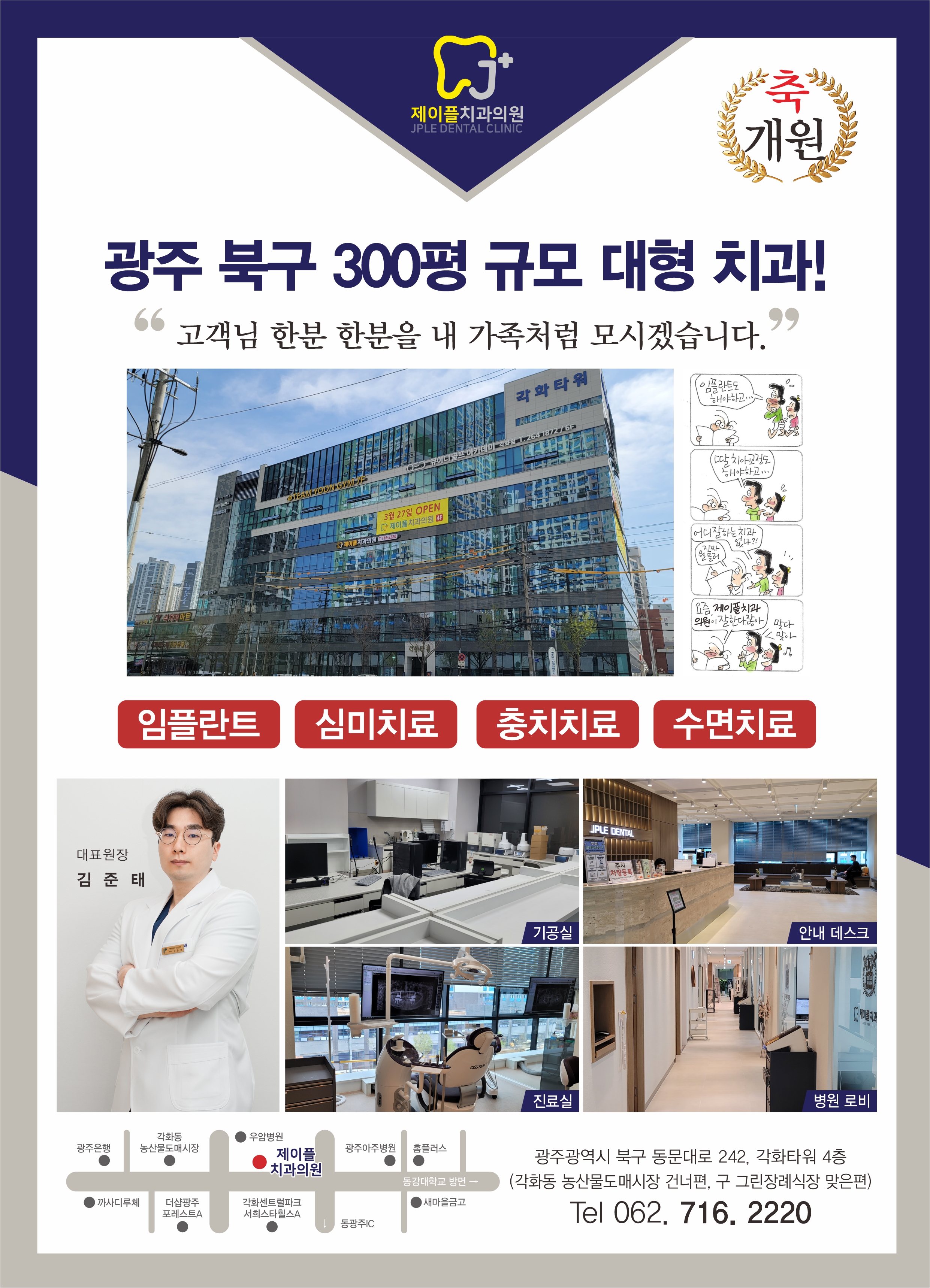 안녕하십니까 제이플치과의원입니다. 저희 제이플치과의원이 3월 27일 확장 이전을 하였습니다. 더욱더 쾌적한 시설에서 최첨단 시설로 내원하신 환자분들을 최선을 다해 진료하겠습니다. 앞으로도 많은 격려와 응원 부탁드립니다. 감사합니다. |