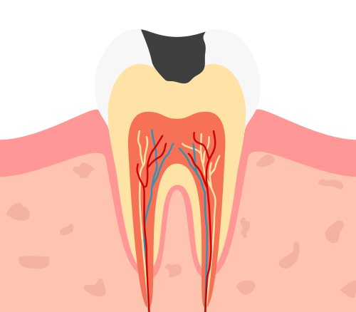 본인도 자각할 수 있는 본격적인 충치 발생의 단계로 뜨거운 것에는 통증이 느껴지지만 차가운 것에는 통증이 오히려 완화되는 양상을 보이기도 합니다. 다음 단계로 발전하기 전 치료를 서두르는 것이 바람직합니다.