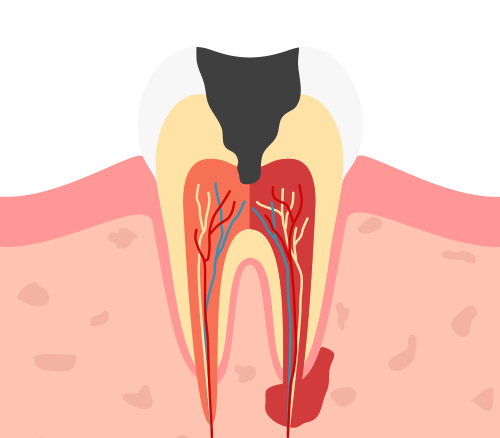 상아질 안쪽 신경까지 충치의 염증이 진행되어 극심한 통증으로 참기 어려우며,뜨겁거나 찬 것에 훨씬 민감해 집니다. 이 단계에서는 썩은 부분만 없애고 때우는 충치치료를 하기에는 늦은 단계입니다.
